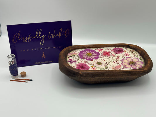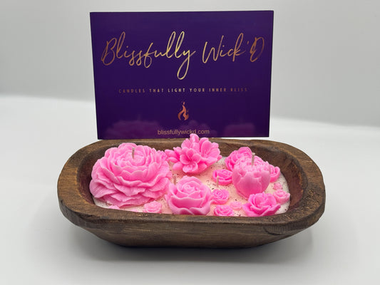 Pink Flowerbed Soy Candle in a Wooden Bowl
