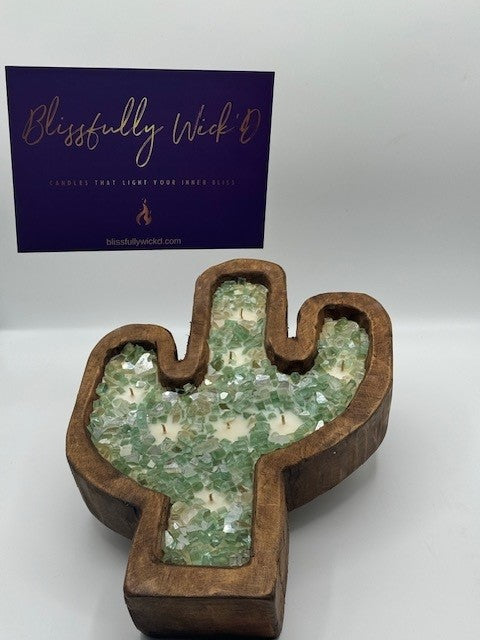 The Cowboy Cactus Soy Candle In Wooden Bowl